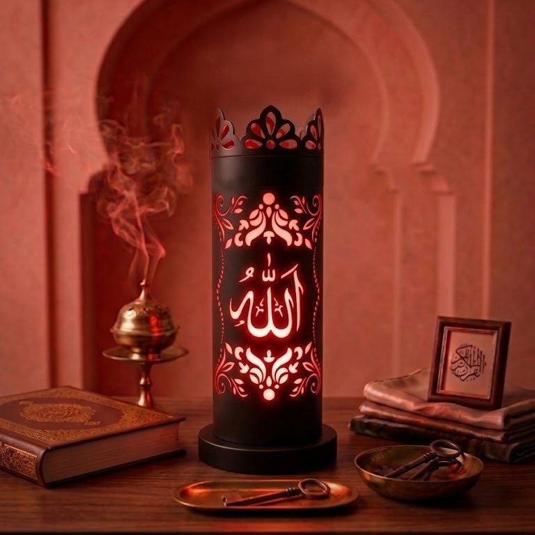 আপনার অন্দরসজ্জায় আধ্যাত্মিক প্রশান্তি এবং রাজকীয় আভিজাত্য নিয়ে আসতে আমাদের এই এক্সক্লুসিভ ক্যালিগ্রাফি ল্যাম্প অনন্য। নিখুঁতভাবে খোদাই করা 'আল্লাহ' নামের ক্যালিগ্রাফি এবং উপরের চমৎকার ক্রাউন ডিজাইন আপনার বেডরুম বা ড্রয়িং রুমের সৌন্দর্য বাড়িয়ে দেবে বহুগুণ। এটি কেবল একটি ল্যাম্প নয়, এটি একটি শৈল্পিক নিদর্শন।